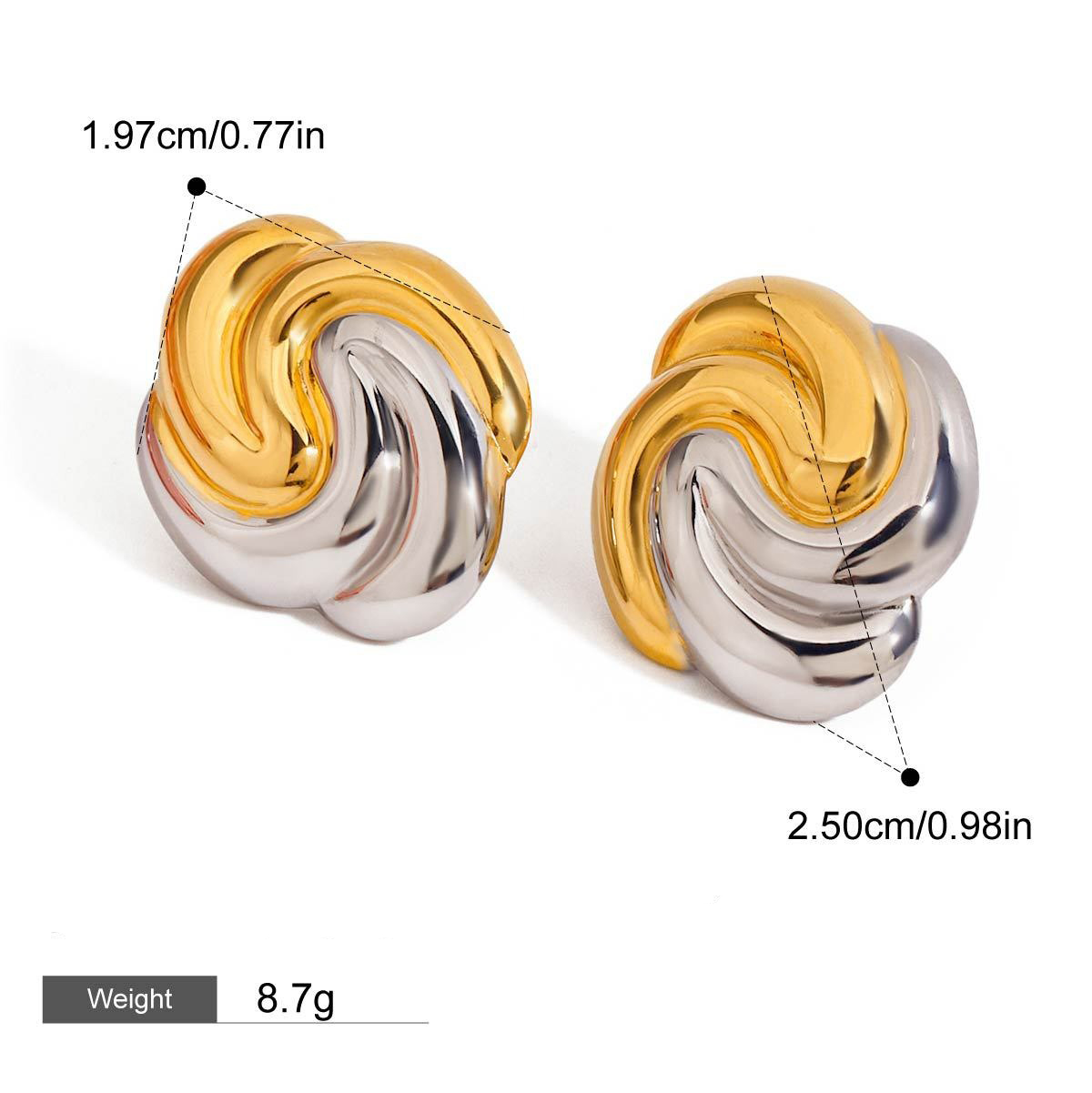 This pair of earrings gives you more possibilities for expression, making your daily outfit full of uninhibited and avant-garde temperament.Breaking the symmetry and convention, this earring collides with geometric structure and gold and silver color matching to create avant-garde fashion sparks. Sharp lines and color boundaries create a highly recognizable shape. It is a trendy item tailored for you who dare to express yourself and pursue individual style.