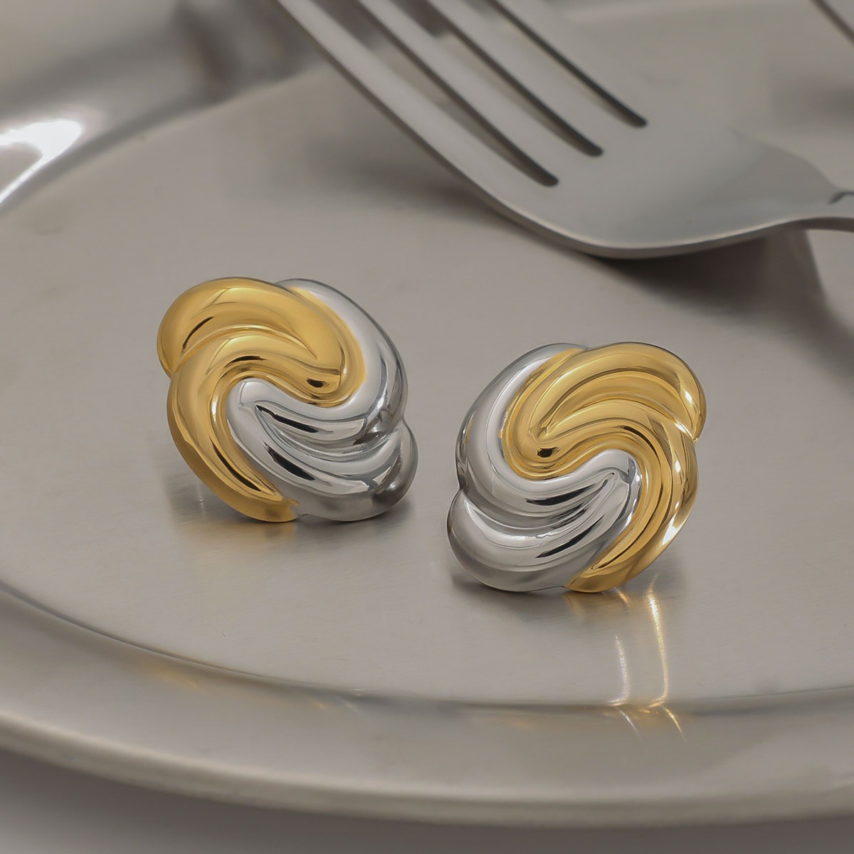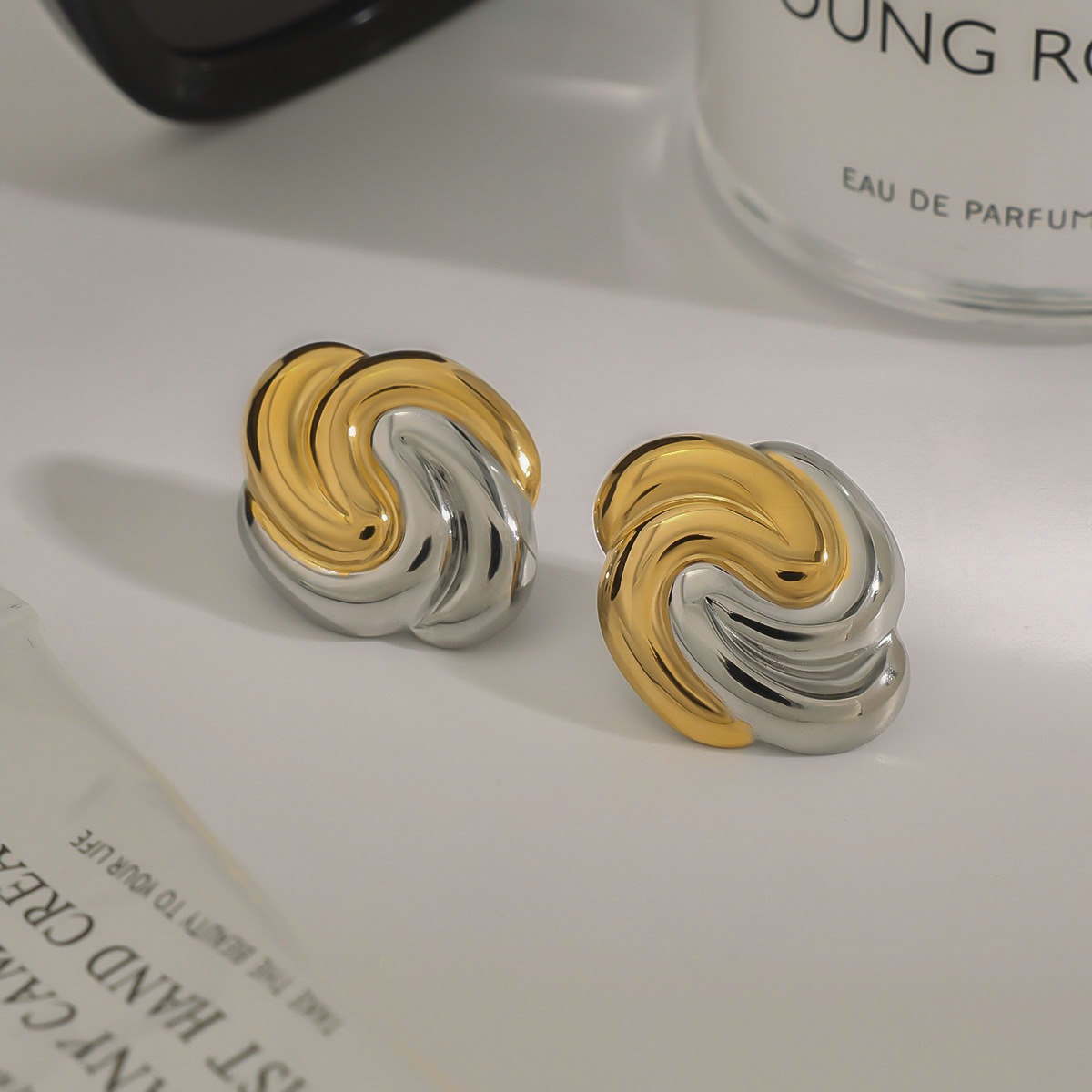 Breaking the symmetry and convention, this earring collides with geometric structure and gold and silver color matching to create avant-garde fashion sparks. Sharp lines and color boundaries create a highly recognizable shape. It is a trendy item tailored for you who dare to express yourself and pursue individual style.