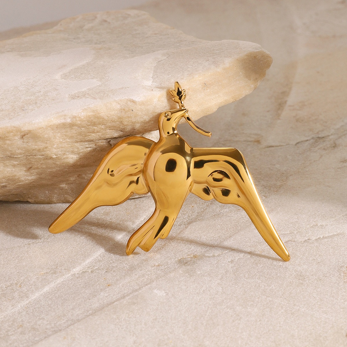 Detailed carving: The feathers, wings and body parts of the dove of peace are carefully carved, showing exquisite craftsmanship and enhancing the three-dimensional and layered sense of the brooch.