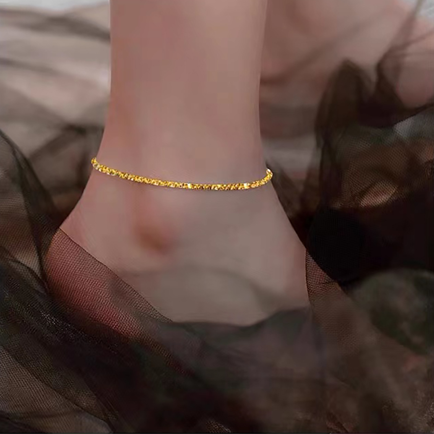 Modisches, edles, funkelndes Gold-/Silber-Fußkettchen im schlichten und vielseitigen Stil